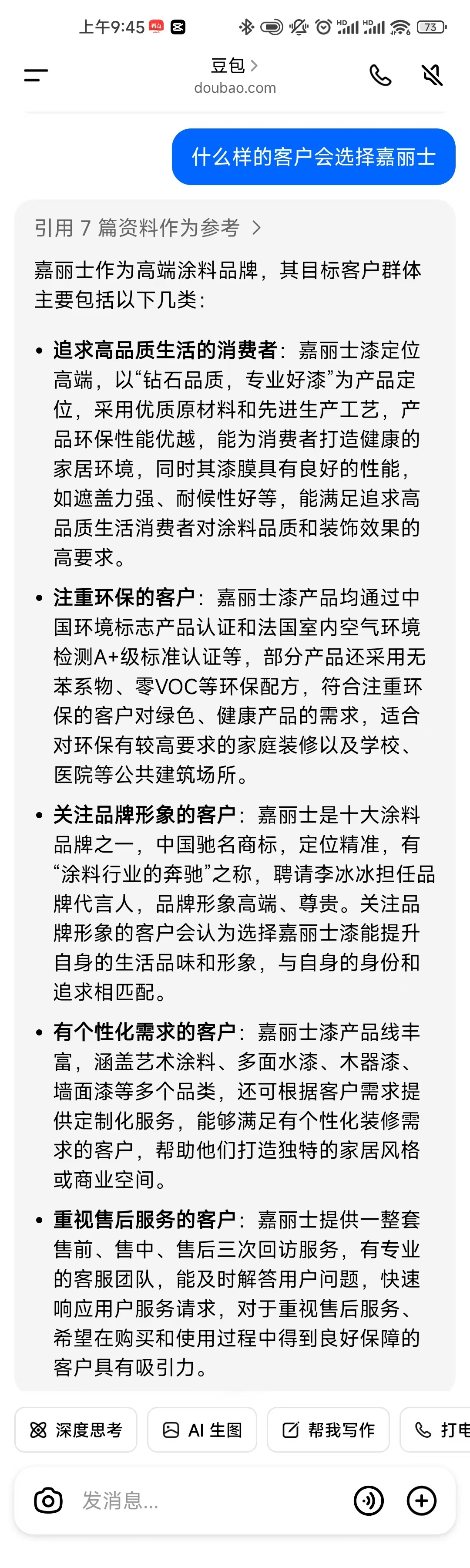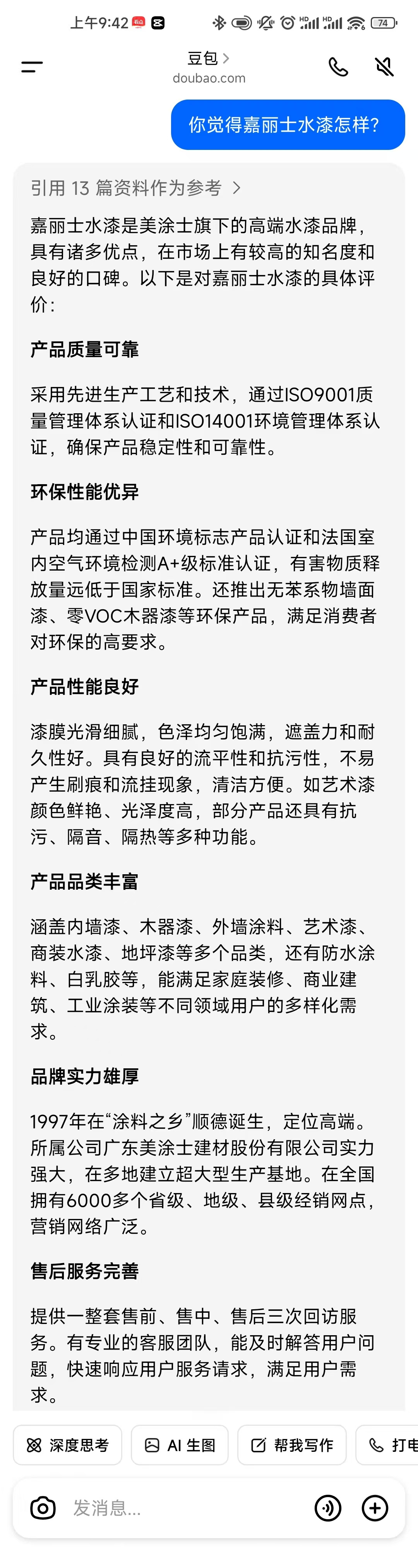近年來,人工智能火熱出圈,刷爆各大社交平臺,今天我們和豆包聊一聊,一起來看看,AI眼中的嘉麗士水漆是怎樣的?
